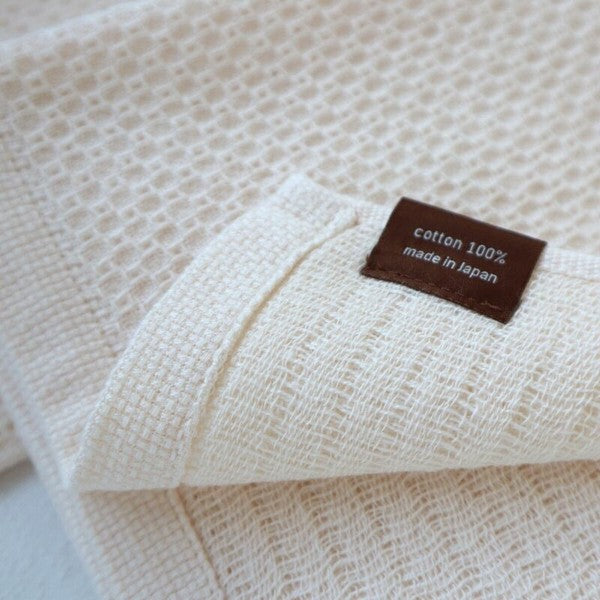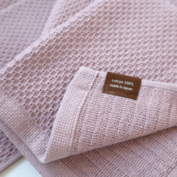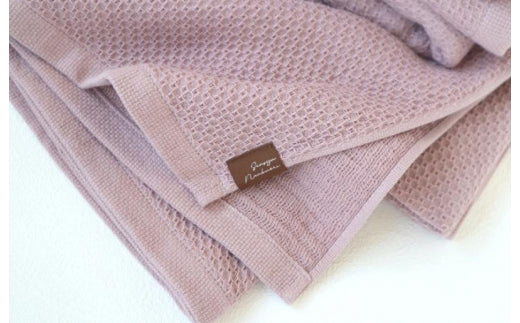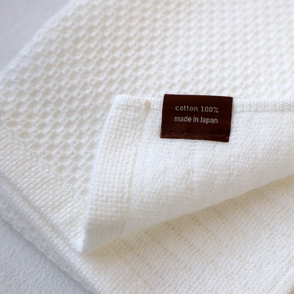 thin yet soft and gentle touch is characterized by the weaving together of hexagonal bumps (honeycomb weave) on the front and coarse gauze on the back. The two-layer structure is soft and fluffy, and its excellent air permeability allows it to dry quickly and to be used cleanly at any time. Certified as a product made in Osaka, Japan.