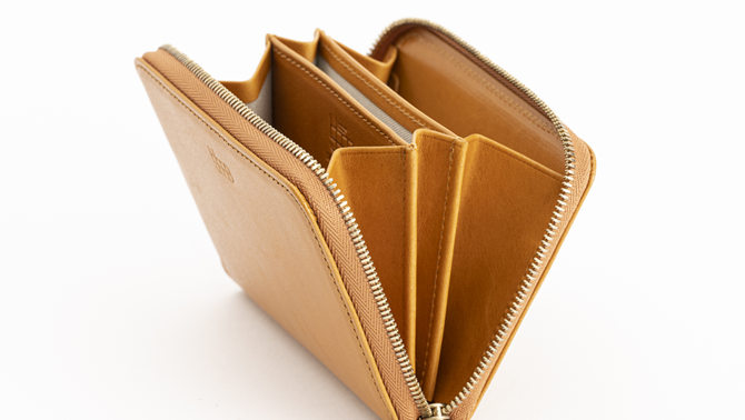 Slim wallet made of high quality nude leather.